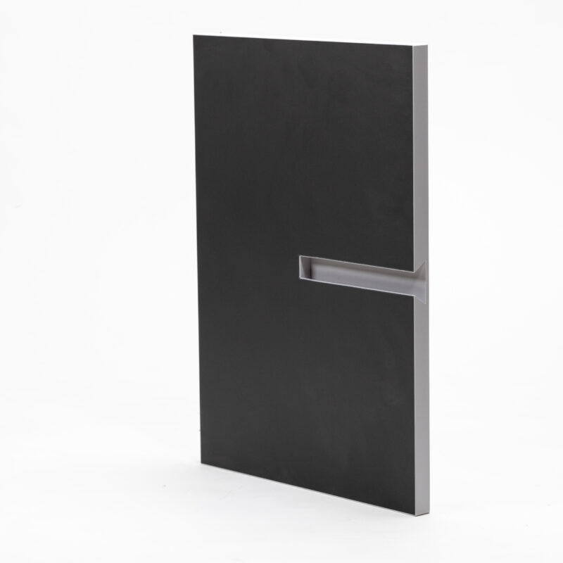 This recessed handle panel is precision-cut directly into the surface using advanced machinery, forming a seamless, built-in grip without any external hardware. The clean grooves offer both ergonomic functionality and a sleek, modern aesthetic—ideal for minimalist interiors.