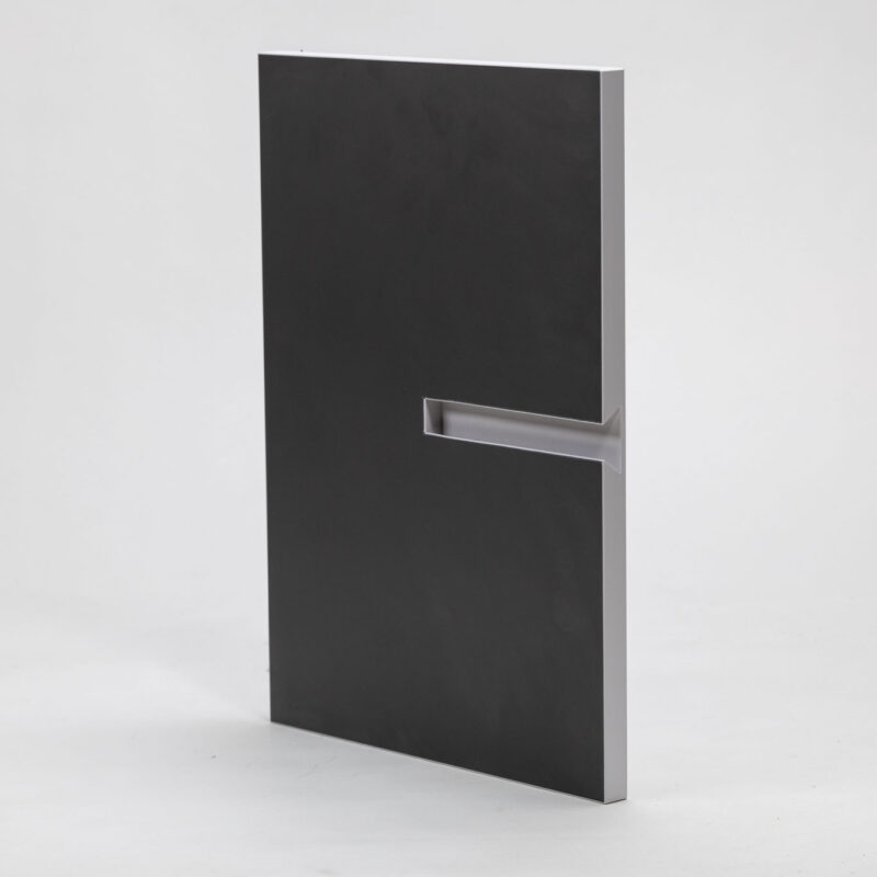This recessed handle panel is precision-cut directly into the surface using advanced machinery, forming a seamless, built-in grip without any external hardware. The clean grooves offer both ergonomic functionality and a sleek, modern aesthetic—ideal for minimalist interiors.